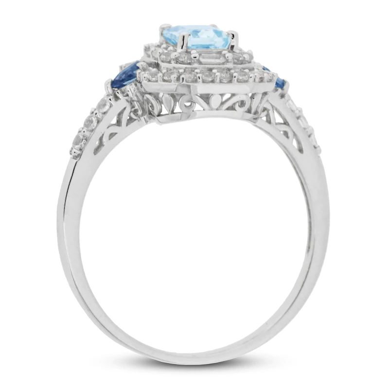 Aquamarine/London Blue Topaz/White Sapphire Ring Sterling Silver